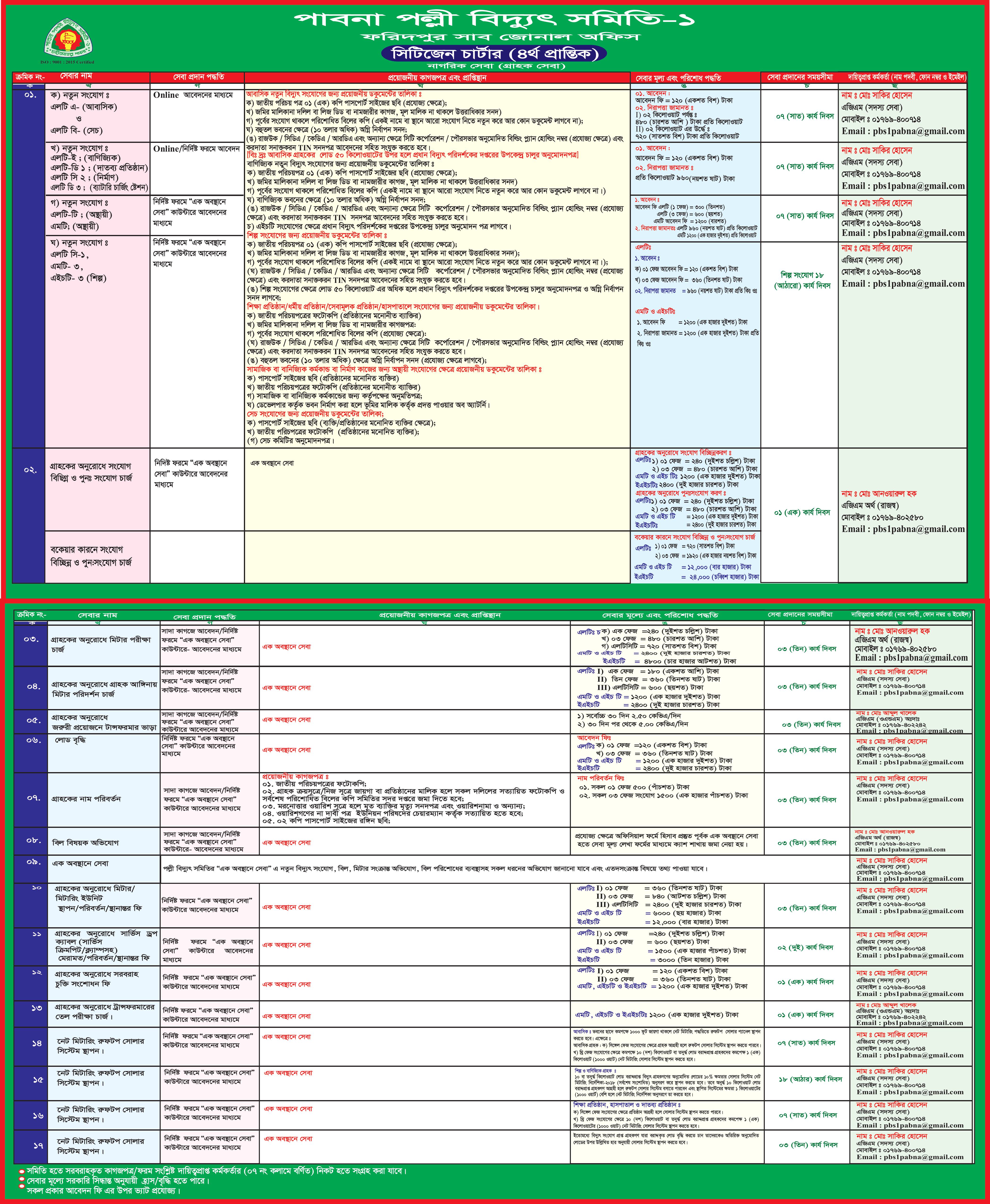৭। গ্রাহকদের মিটার সংযোগ, পুনসংযোগ, সংযোগ বিচ্ছিন্ন, স্থানামত্মর, সাময়িক সংযোগ, স্থায়ী সংযোগ ইত্যাদি যথানিয়মে সম্পাদন করা হয়।